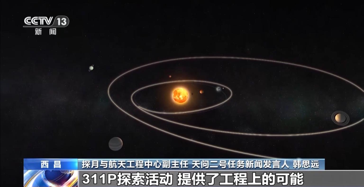 探月与航天工程中心副主任 天问二号任务新闻发言人 韩思远:我们在前期的轨道设计、方案详细设计等方面,开展了大量的仿真计算。我们通过优化轨道设计等等手段,能够实现较小能源代价的情况下,对小行星实现抵达和采样返回。这些为我们接续实施好311P探索活动,提供了工程上的可能。